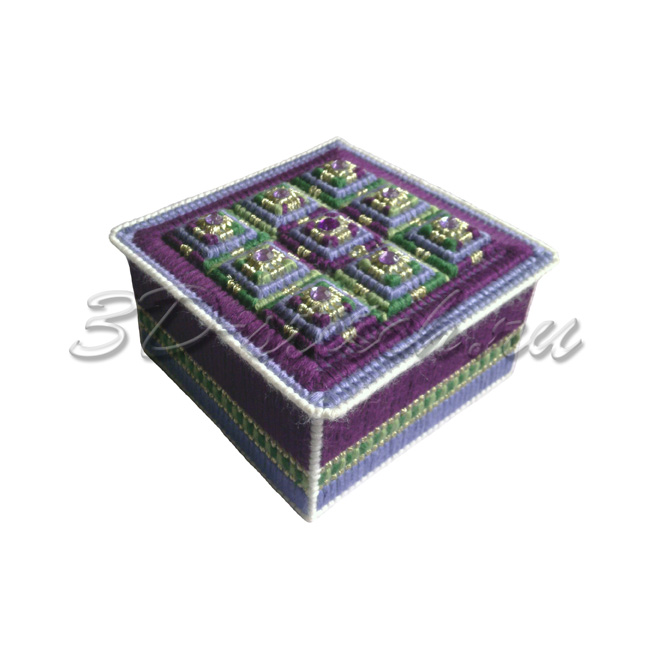 В состав набора входит: пластиковая канва 7 ct (28 клеток в 10 см), мулине шерсть (Россия), стразы, инструкция по вышивке и сборке изделия, игла.