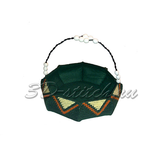 В состав набора входит: пластиковая канва 7 ct (28 клеток в 10 см), мулине шерсть (Россия), фетр, проволока для ручки, деревянные бусины для украшения, инструкция по вышивке и сборке изделия, игла.